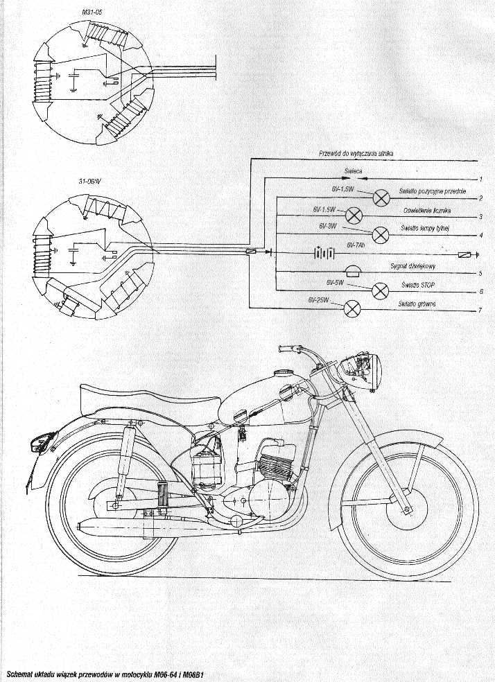WSK M21W2 i pochodne .Schemat układu polączeń prądu stałego 6V . Schemat zamieściłem dzięki Julasowi kobuz1@vp.pl