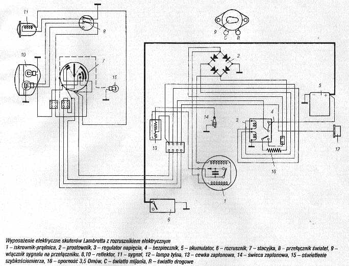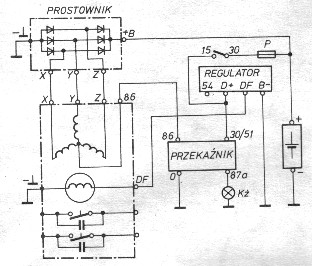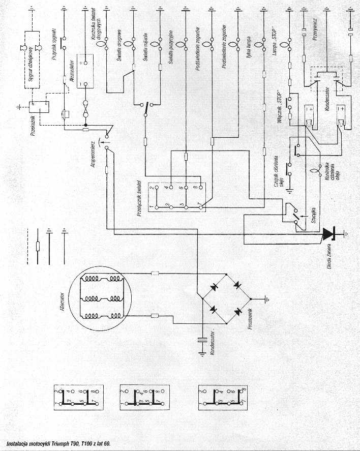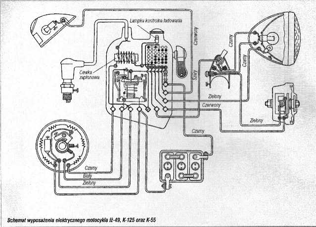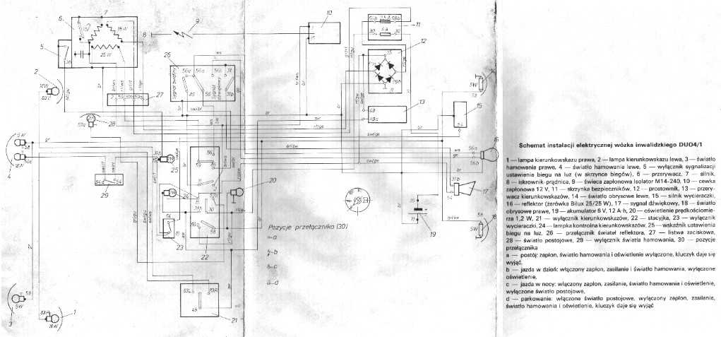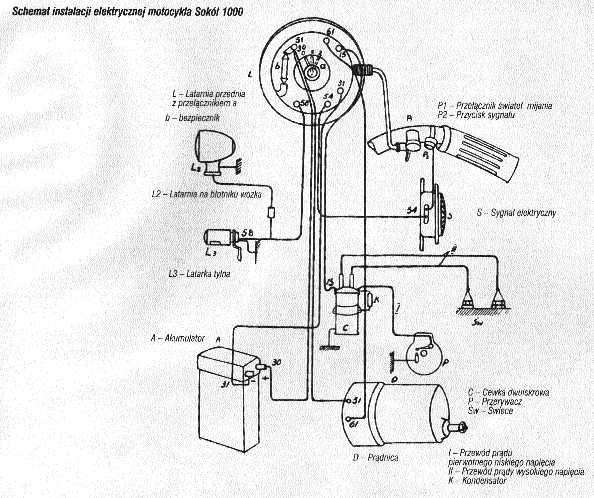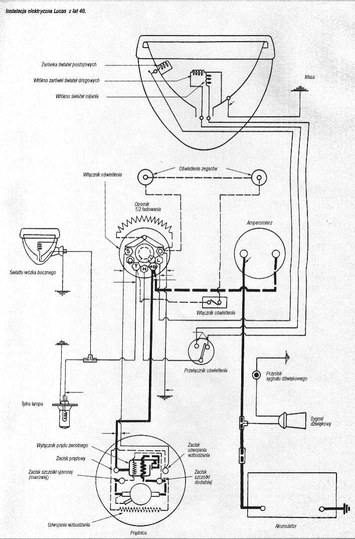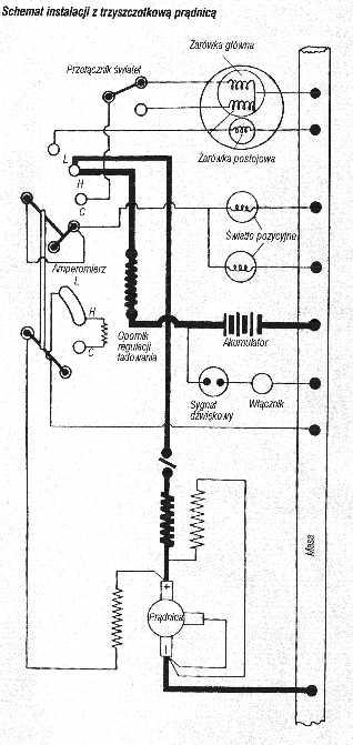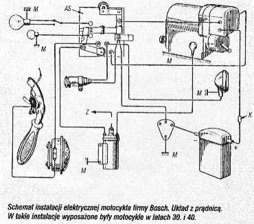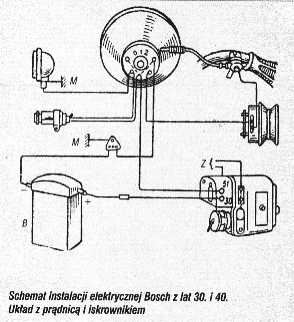 Instalacja Bosch z lat 30-40 schemat z prądnicą i iskrownikiem