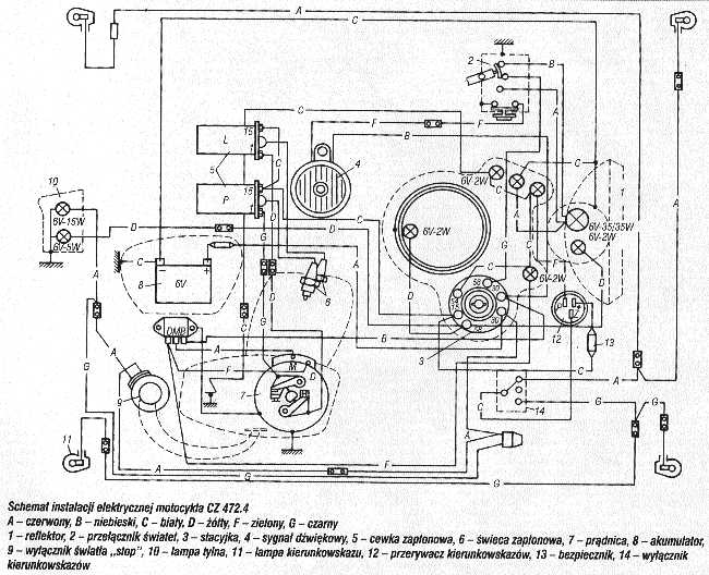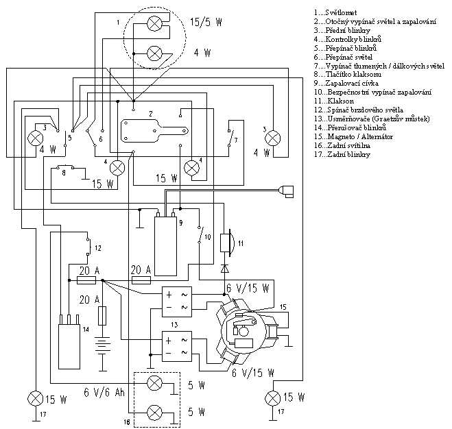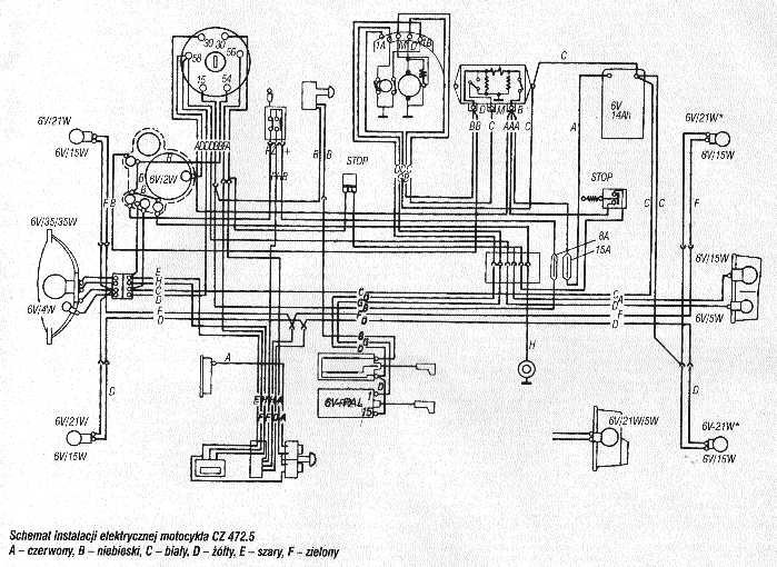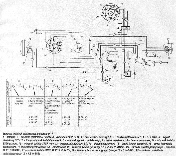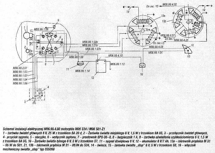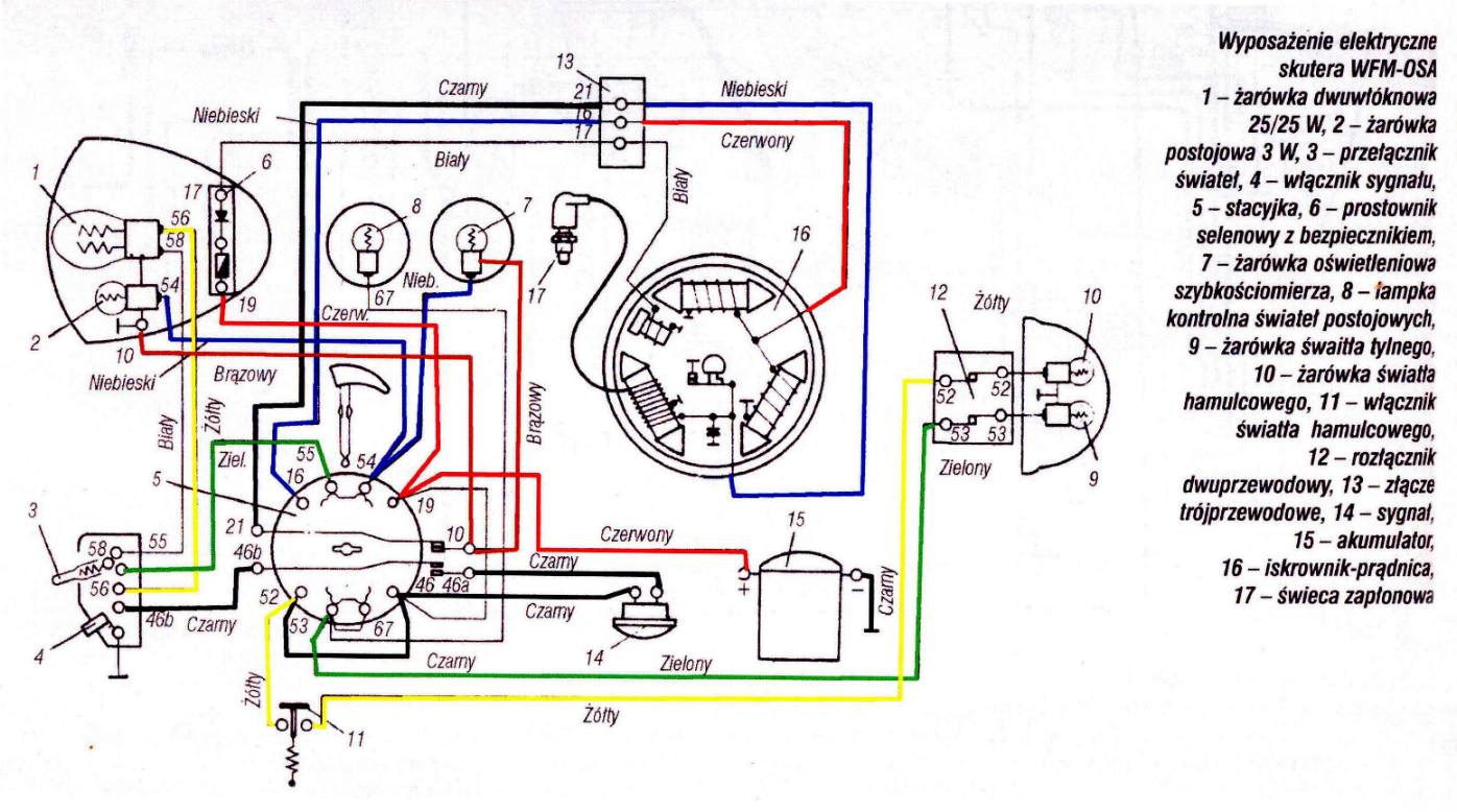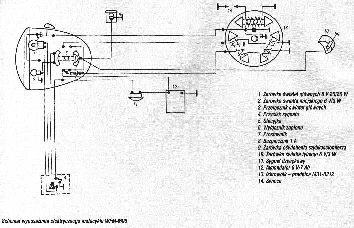 WSK M21W2 i pochodne .Schemat układu polączeń prądu stałego 6V . Schemat zamieściłem dzięki Julasowi kobuz1@vp.pl