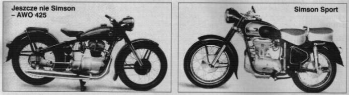 Początki firmy "Simson" z Suhl sięgają 1856 r. ,ale przygodę z jednośladami zaczeła się dopiero w 1896 r. od produkcji rowerów.Jednak o Simsonie tak naprawdę zaczęło być słychać od 1908 r. za sprawą samochodów, a zwłaszcza modelu Supra z ośmiocylindrowym silnikiem o mocy 90 KM.Po pierwszej wojnie światowej ,w 1930 r.,powrócono do wytwarzania aut.Marka rosła w siłę i gdy w 1934 r. wsztrzymano produkcję samochodów ,zakłady były gotowe do produkcji zbrojeniowej.Rządowe zamówienia nie przewidywały jednak montażu armat czy karabinów ,ale małych jednośladów dla wojska.Tak zaczęła się przygoda Simsona z silnikowymi jednośladami,chociaż nie były to jeszcze motocykle z przwdziwego zdarzenia ,ale rower z silnikiem o pojemności 100 cc, (BSW 98).Po wojnie Rosjanie nie zdemontowali linii produkcyjnych tak , jak zrobiono w wielu innym niemieckich fabrykach.Powołano do życia rosyjską spółkę Awtowelo,lepiej znaną pod skrótem Awo .W lipcu 1949 r. zakład opuścił Awo 425,całkowicie wzorowany na jednocylindrowym BMW R 23.Tajemnicze oznaczenie kryło w sobie cyfrę "4" ,oznaczającą silnik czterosuwowy i liczbę "25" ,stanowiącą kod pojemności skokowej 250 ccm.Awo 425 podobnie jak BMW R-25 (produkowane w RFN ) miało silnik jednocylindrowy OHV o pojemnoSci 250 ccm i mocy 12 KM przy 5500 obr./min.